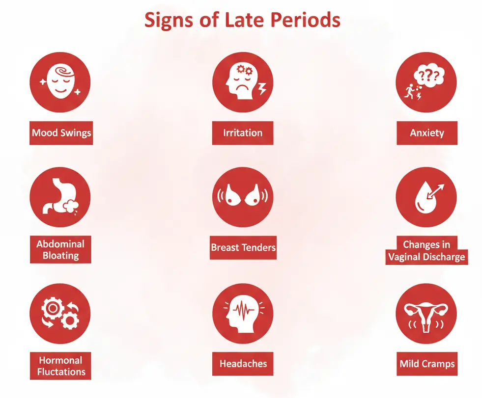 2. What are common signs of period coming late?